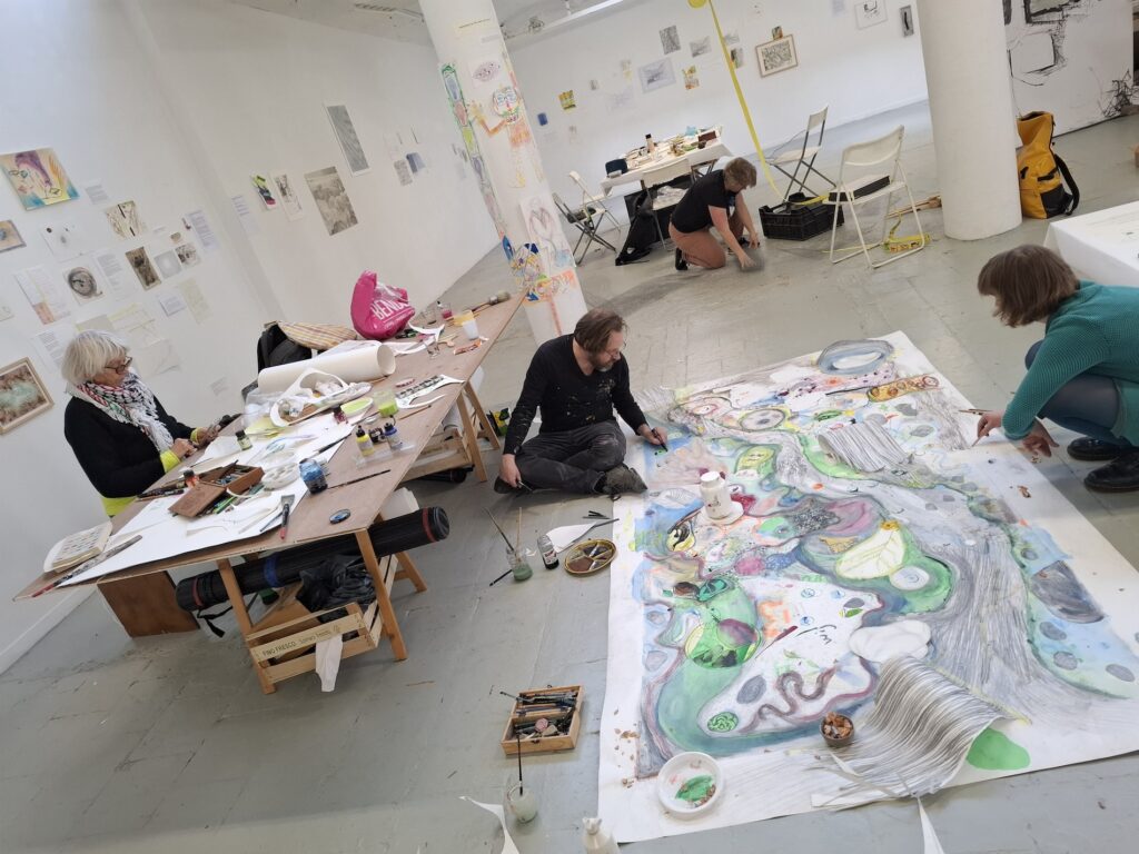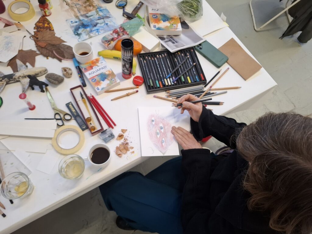 De workshop biedt ruimte voor ontmoeting, verbeelding en gedeelde verhalen. Kunst wordt hier gebruikt als middel om ervaringen te delen, vragen te stellen en samen na te denken over toekomst, herinnering en rechtvaardigheid.