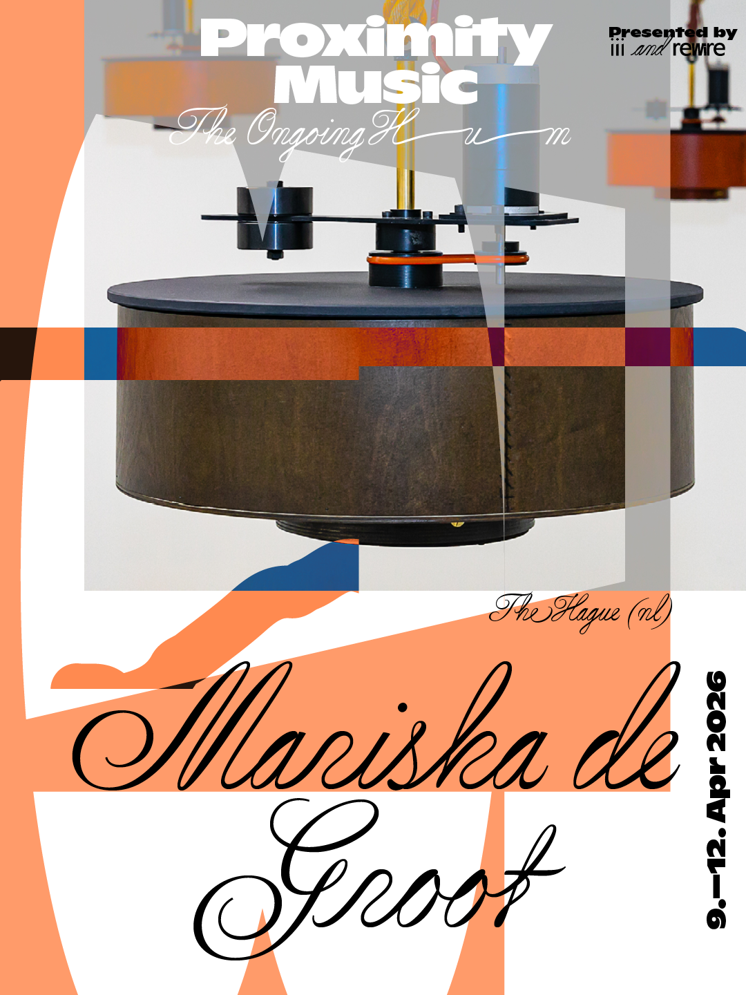 Proximity Music is a joint exhibition programme initiated by iii and Rewire. It seeks to connect sound, architecture, and technology through intimate sensory experiences. As part of Rewire 2026, the sixth edition, titled Proximity Music: The Ongoing Hum, will take place from 9 to 12 April across various locations in the centre of The Hague.